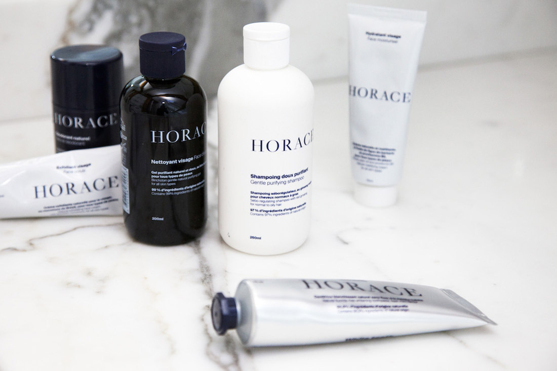 I always have my bag, an Arket one, with a black outfit. I’m always dressed in black. 5 identical t-shirts, black trousers, a pair of Birkenstocks in summer, and boots in winter. Easy to put on, easy to wear, no decisions required, I love it. I also travel with the Horace deodorant, which I really like. I often pack the face scrub too, along with the toothpaste, which is a key component of my routine. In my line of work, you’re always trying food, and talking to people.