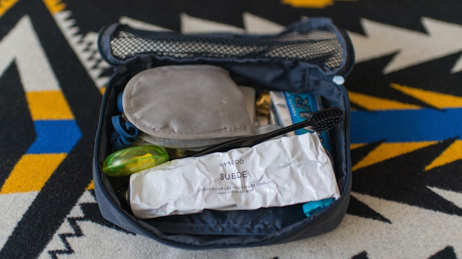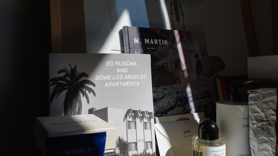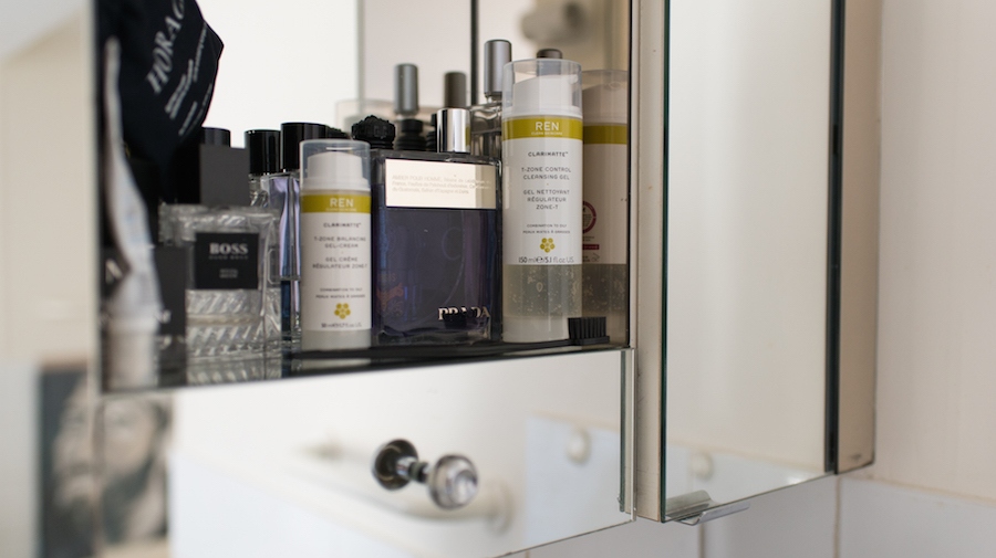 Le métier de styliste impose d’être en forme : outre les longues journées de shooting, il partage une grande partie de son temps entre voyages professionnels et fashion weeks. “Tous les mois, il y a un voyage, mais tous les 2 mois environ, il y a un gros voyage, en Amérique du Sud, en Asie, aux États-Unis”, raconte-t-il. “Je transporte toujours la même chose, dans une petite trousse Muji : quelques comprimés de camomille, une crème hydratante, une huile essentielle de ravintsara pour me relaxer, que j’applique sur mes poignets, un masque pour dormir, une brosse à dents, et une pilule pour dormir”. Sans ça, pas de voyage.