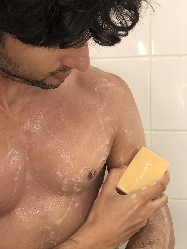 1 à 2 fois par semaine, passez le pain de savon sur votre peau mouillée pour bien faire mousser.